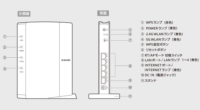 有線ポートはGigabitに対応しているため、無線と有線の両方で高速光回線(ギガ)サービスの速度を最大限に利用することができます。