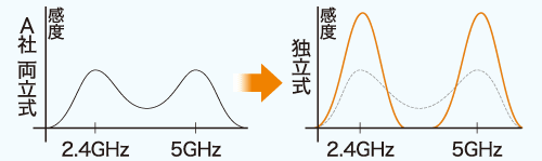 | 周波数(中心周波数) | 2.4GHz : 2,412~2,484MHz 5GHz : 5,150~5,725GHz |