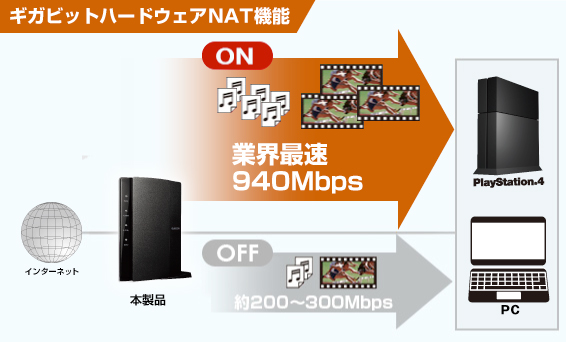 通信をハードウェア処理することができるようになり、インターネットとパソコン・ゲーム機などの間の通信スループットを高速化することができます。
