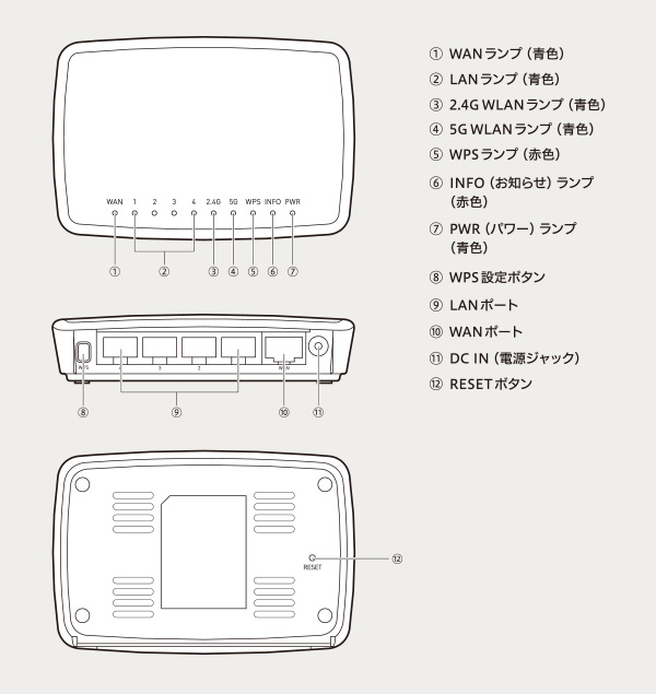 | 主な製品構成 | 無線LANルーター 1台、スタンド 1個、ACアダプター 1個、LANケーブル 1本、CD-ROM 1枚、各種マニュアル、設定情報シート(メモ用) 2枚、 イカロスライセンスシリアル & Webサイトフィルターライセンスシート 1枚、U-NEXTカタログ 1枚 |