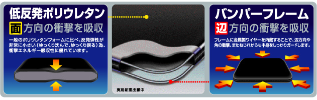 ● 低反発ポリウレタン製×バンパーフレームで全方向の衝撃からしっかりガード