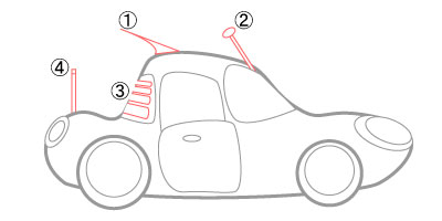 - ピラーアンテナ(Aピラーに内蔵されていて、金属製アンテナを手動で引き出すタイプ)