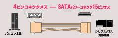 4ピン電源コネクタをシリアルATA電源コネクタに変換するケーブルです。