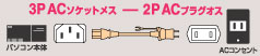 3P-2P電源ケーブル