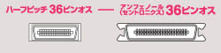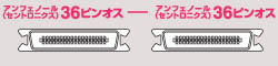 切替器⇔プリンタ間の接続など、アンフェノール(センロトニクス)36ピンメスのコネクタを持つ周辺機器同士を接続するケーブルです。 |