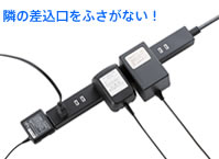 幅広のACアダプタでも隣の差込口をふさがないスリムタップ!