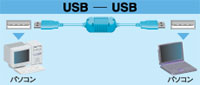 ・2台のパソコンをUSBで接続し、LANと同様のファイル転送やフォルダの共有、ゲームの通信対戦などが可能。 |