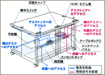 ■ネットワーク配線に必要な各々のデスク間配線機能はもちろん、電源系と情報信号系を分離配線できます。