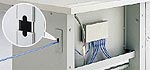 デスク背面はケーブルボックス付パネルとメンテナンスパネルの二重構造。余長コードの収納はもちろん、小型HUBの設置もできます。(HUBは当社製品LD-PHB5NA・PHB8NAをLD-MAGKITで取り付けてください)