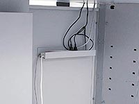 バックパネルとの間に十分なワイヤリングスペースを確保します。コンセントタップ配置に便利な大型コードフック1個付。 |