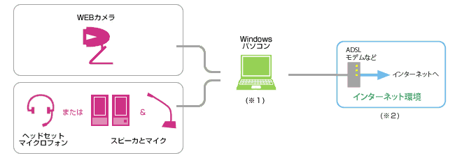 ADSL回線または光回線、CATV回線などのブロードバンド回線を使用したインターネット環境が必要です。