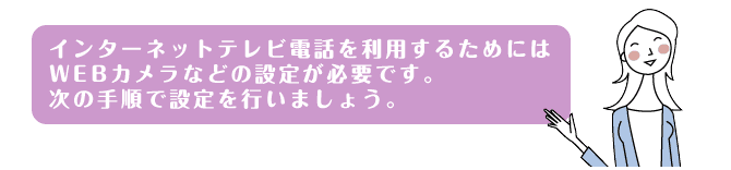 インターネットテレビ電話を楽しむには、MSNメッセンジャーやYahoo!メッセージャーなどのコミュニケーションソフトを設定します。ここでは例として、MSNメッセンジャーを設定します。