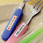 | お弁当箱やコップ、歯ブラシ、傘、水回りの品物など耐水性を必要とする小物類に最適な耐水なまえラベルです。