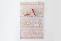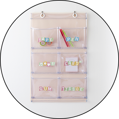 壁掛けタイプの収納ポケット部分に貼付ける。