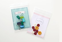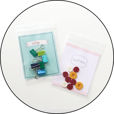 透明ジッパーデザインカードすぐに散らかってしまう小物は、カードにアイテム名を書いてジッパーバッグにまとめて収納。