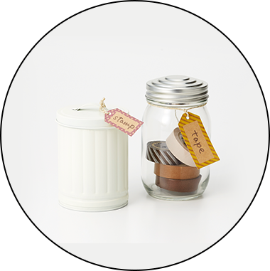 普段使う細々した物は、瓶などに入れて収納。
