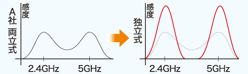 | 周波数(中心周波数) | 2.4GHz(2,400~2,484MHz) 5GHz(5,150~5,725MHz) |