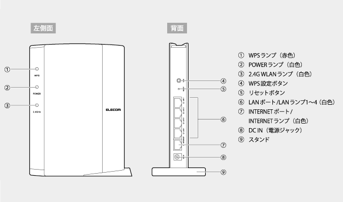 | WAN設定 | DHCP / 固定IP / PPPoE(1セッション) |