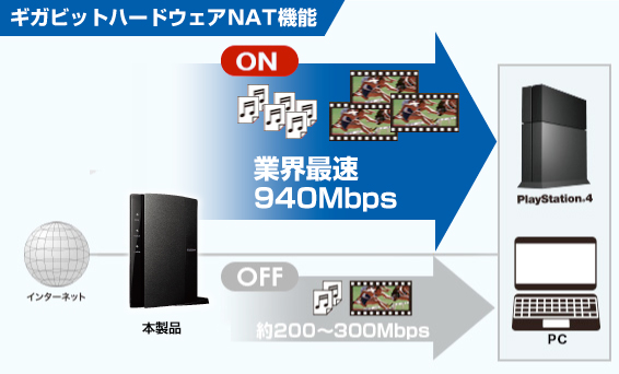 業界最速の940Mbpsを実現ハードウェアNAT搭載により超高速
