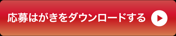 上記ボタンをクリックし、PDFをダウンロードしてください。お持ちのプリンターでA4出力し、出力されたA4用紙の必要な部分を枠線に沿って切り取ります。「山折線」に沿って二つ折りにし、裏面をのり等で付け合せれば応募はがきとしてご利用になれます。