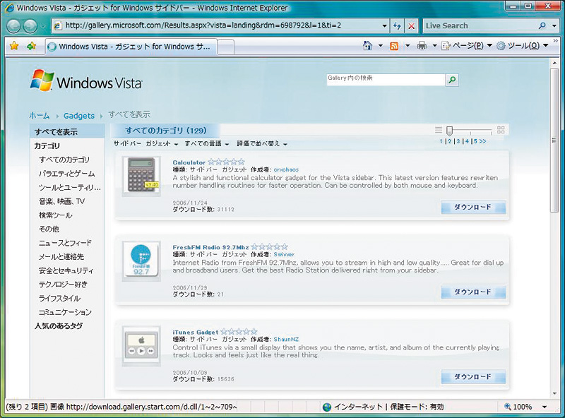ガジェットは自由に追加することができ、インターネットからダウンロードすることも可能。英語版のガジェットが大半だが、今後の展開に期待したい