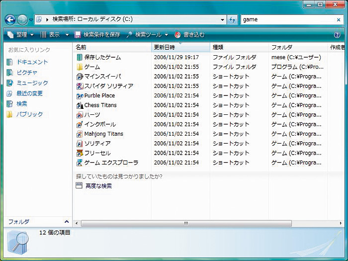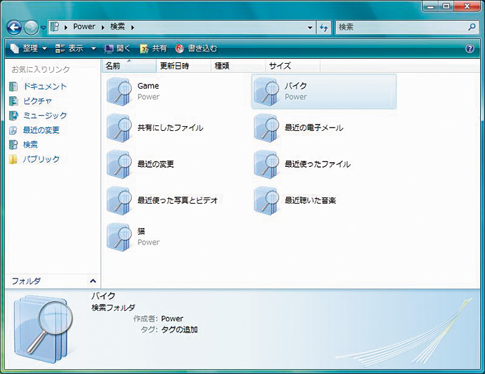 Windows Vistaでは、検索機能が大幅に強化されている。従来もインデックスサービスを利用した検索が可能だったが、Vistaではスタートメニューやフォルダウィンドウなど、あらゆる場所に検索ボックスが用意されており、目的のデータをすぐ探し出せるようになっている。また、フォルダのレイアウトで「閲覧ペイン」を表示しておけば、検索で絞り込まれたファイルの内容を個別にプレビューできるので、目的のファイルにたどり着きやすい。さらに、一度実行した検索は、その条件を保存しておくことも可能。たとえば、特定のプロジェクトに関する文書や写真を条件にしておけば、無関係のファイルが増え続けても、検索条件からいつでも関連する最新のファイルを探し出せる。標準で用意されている「最近利用したファイル」も重宝する。このほか、検索結果を特定の項目でまとめる「スタックビュー」を利用すると、ファイルの保存場所にかかわらず仮想フォルダ内に並べて比較することができる。