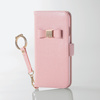 iPhone 8用ソフトレザーカバー/女子向/リボンリングストラップ付