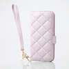 iPhone 15 ソフトレザーケース キルティング 手帳型 磁石付 ハンドストラップ付